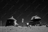 peak of Sniezka mountain during winter at night with stars sky on Poland and Czech border