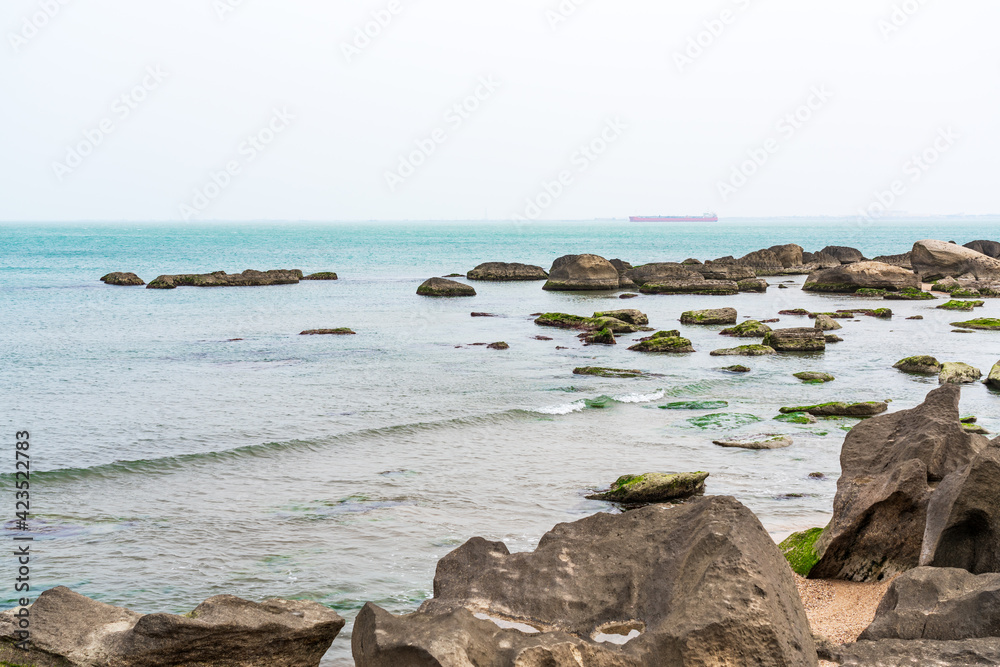 Rocky sea beach with boulders
