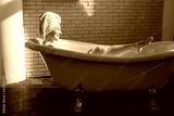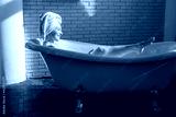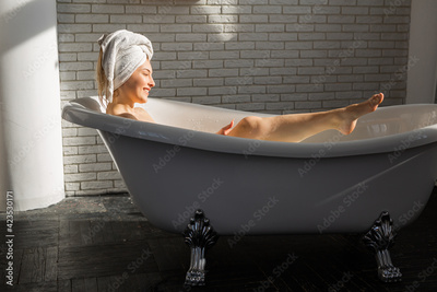 beautiful young woman bathes in the bathroom
