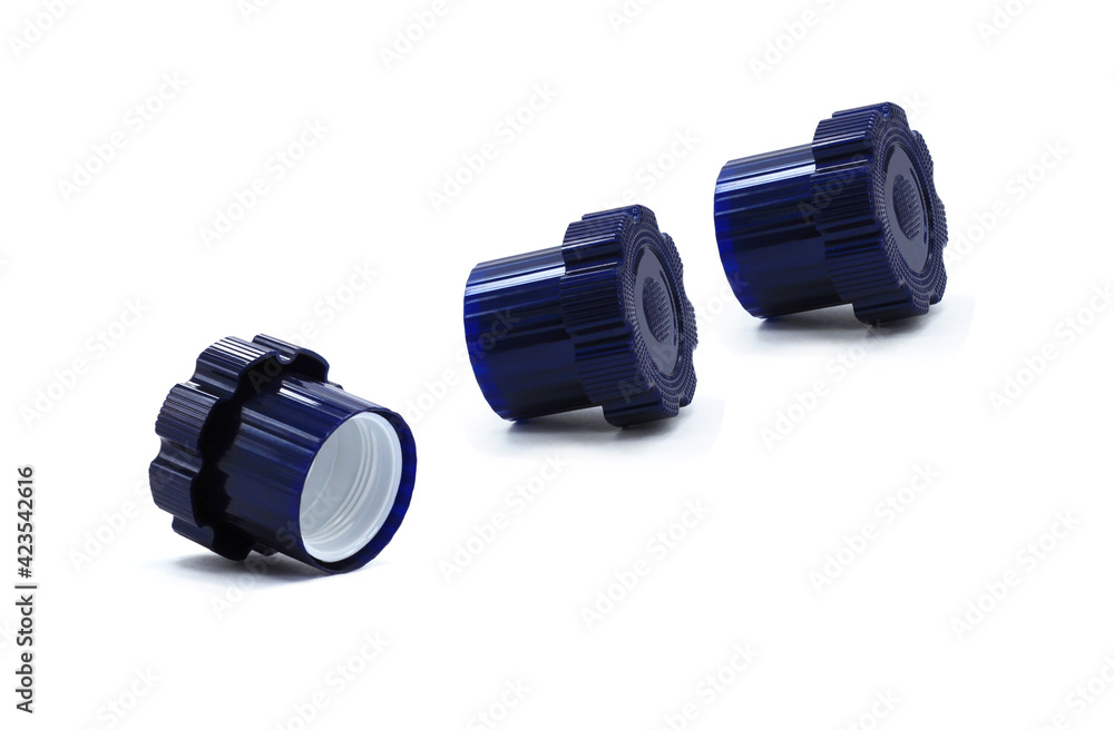Plastic lids close up isolated on white background