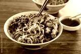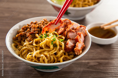 Kolo Mee is a Sarawak Malaysian dish of dry noodles tossed in a savoury pork and shallot mixture, topped off with fragrant fried onions.