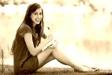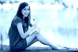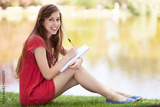 Female with workbook outdoors
