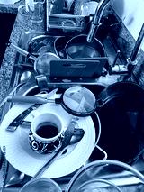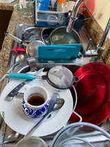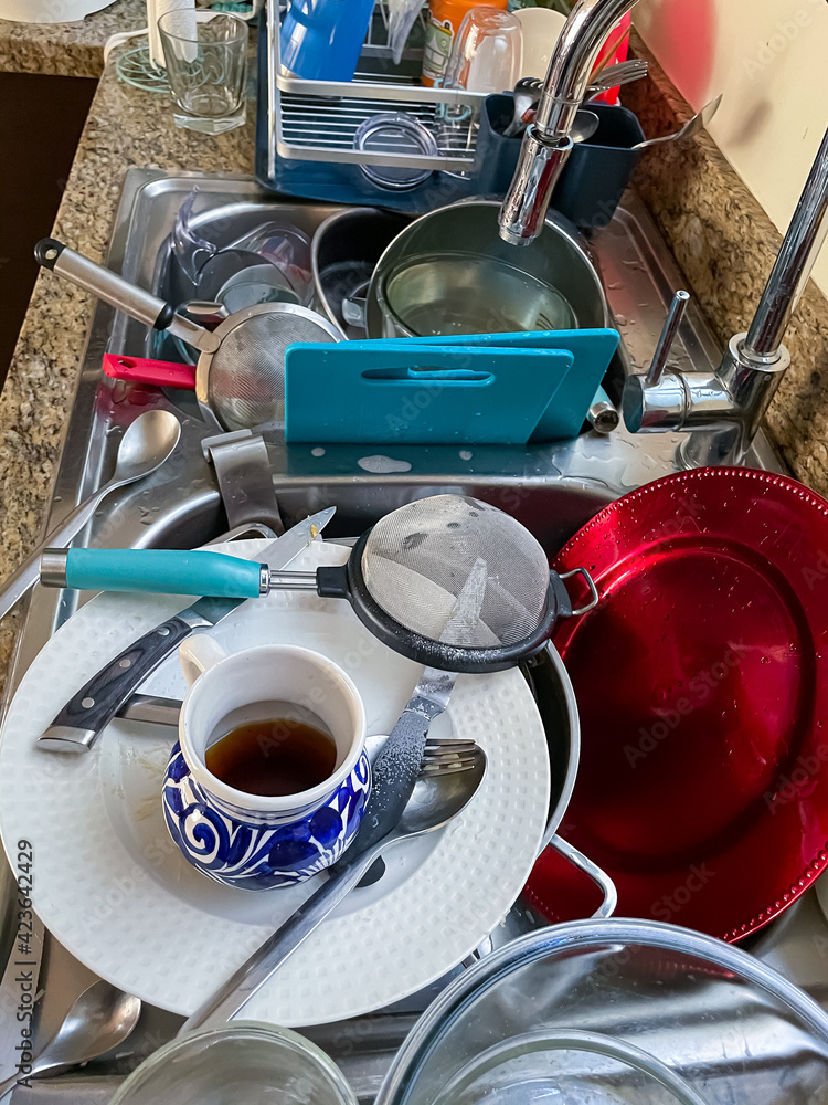 A lot of dirty dishes in the Sink waiting for been dishwash