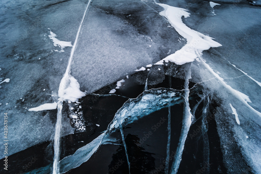 The frozen lake Torneträsk in Swedish Lapland. Beautiful ice forms create an amazing sight.