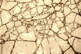 The remains of cracked asphalt on the ground. Top view