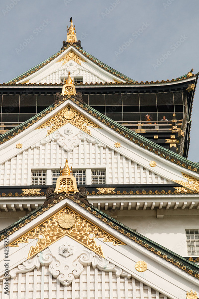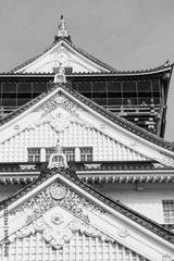 Details of Osaka's Castle incredible and imposing monument with beautiful nature