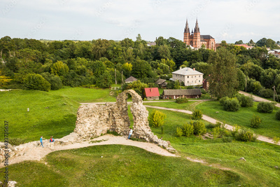 Ruins of the Rezekne castle hill and church, Latvia. Captured from above.