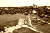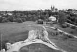 Ruins of the Rezekne castle hill and church, Latvia. Captured from above.