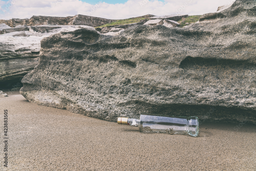 Abandoned glass bottle. environmental pollution