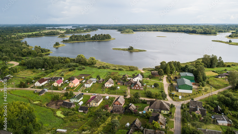 Aerial view of Dagda town and Dagda lake, Latvia