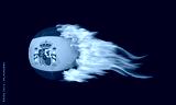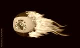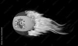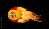 Blazing Soccer Ball With Spain Flag on Fire Isolated on Black Background.