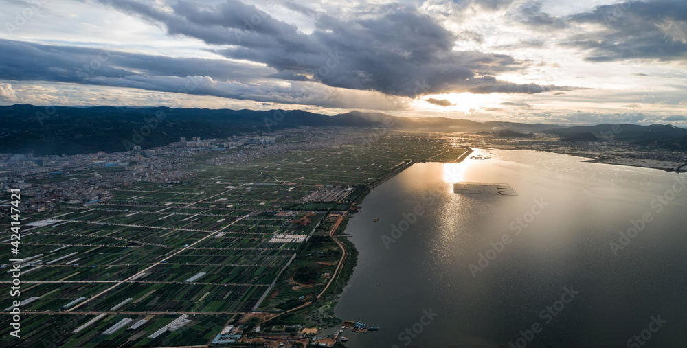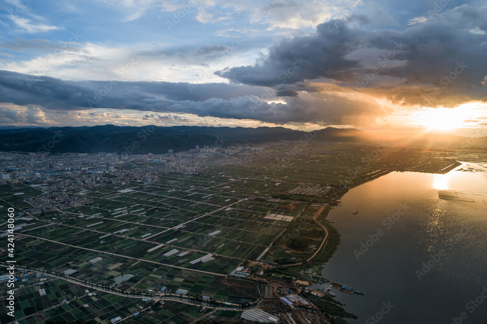 aerial view of agricultural plots of land under cultivation in Vegetable Plants near Kunming, China