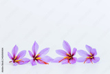 Saffron crocus flower on white background. Copyspace. Place for your text.