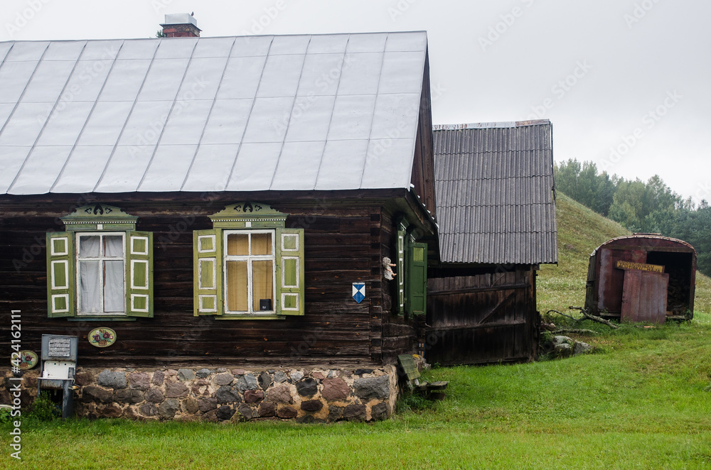 Russian Old Believers village in Latvia, Slutiski. Beautiful wooden house.