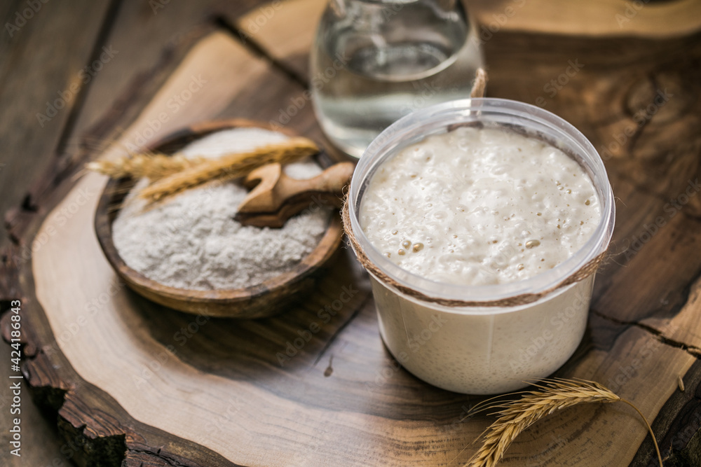 The leaven for bread is active. Starter sourdough ( fermented mixture of water and flour to use as leaven for bread baking). The concept of a healthy diet
