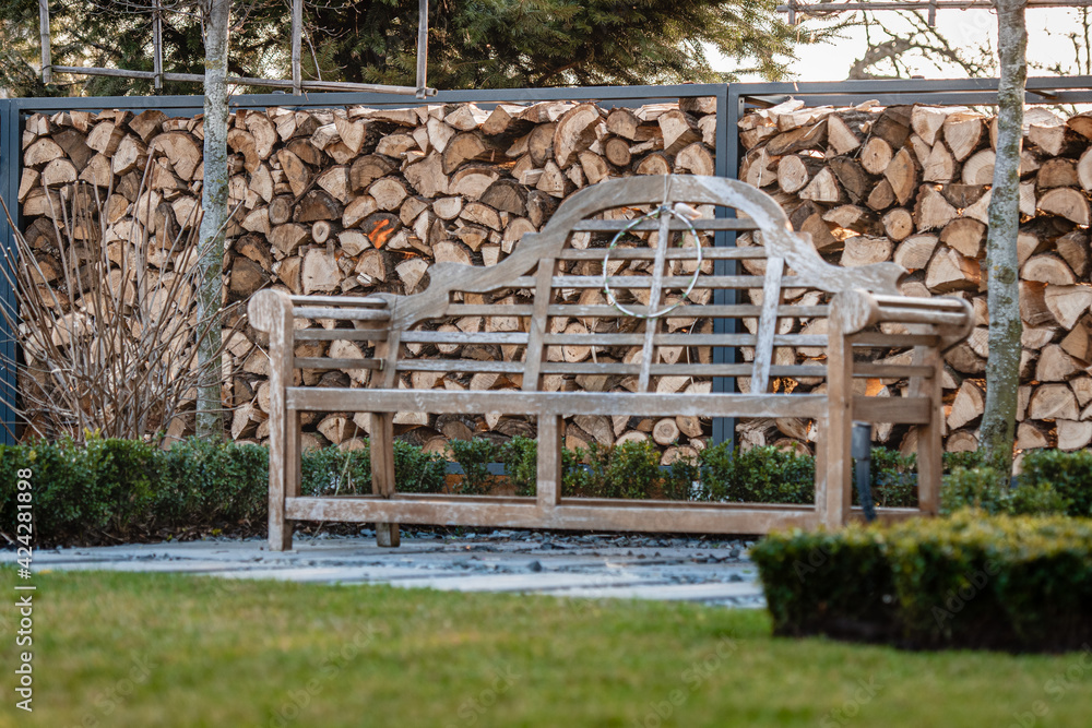 drewno w ogrodzie, ławeczka w ogrodzie, nowoczesny ogród, ścianka z drewna, gardens