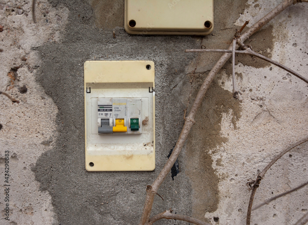 outdoor outdoor electric circuit breaker on the wall of the house, automatic