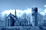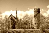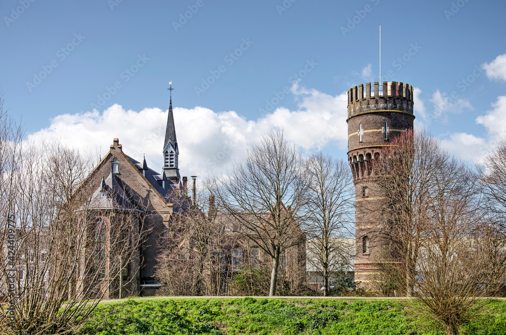 Hellevoetsluis, The Netherlands, March 19, 2021: roman catholic church and water tower inside the historic fortified town