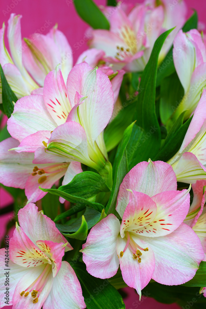 A bunch of white and pink Alstroemeria Lily of the Incas flowers