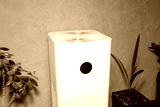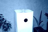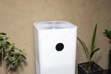 Close-up of a white indoor air purifier. Dust and allergy cleaner in the house.