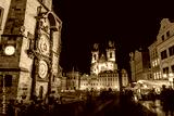 PRAGUE, CZECH REPUBLIC, 31 JULY 2020: Astronomical Clock and Church of Our Lady of Tyn at night