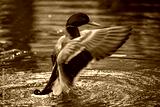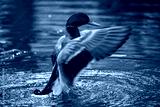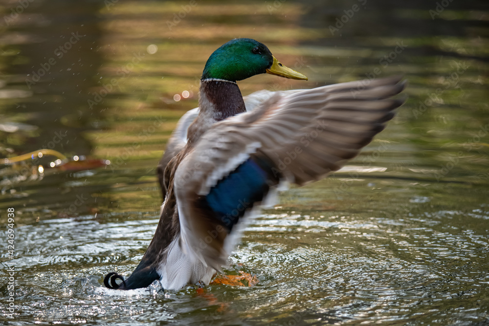 Mallard duck (Anas platyrhynchos) splashing in a lake