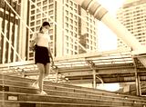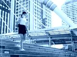 Young adult business asian working woman wear face mask for protect virus corona or covid19 and air pollution. Urban people lifestyle with public health on day concept.