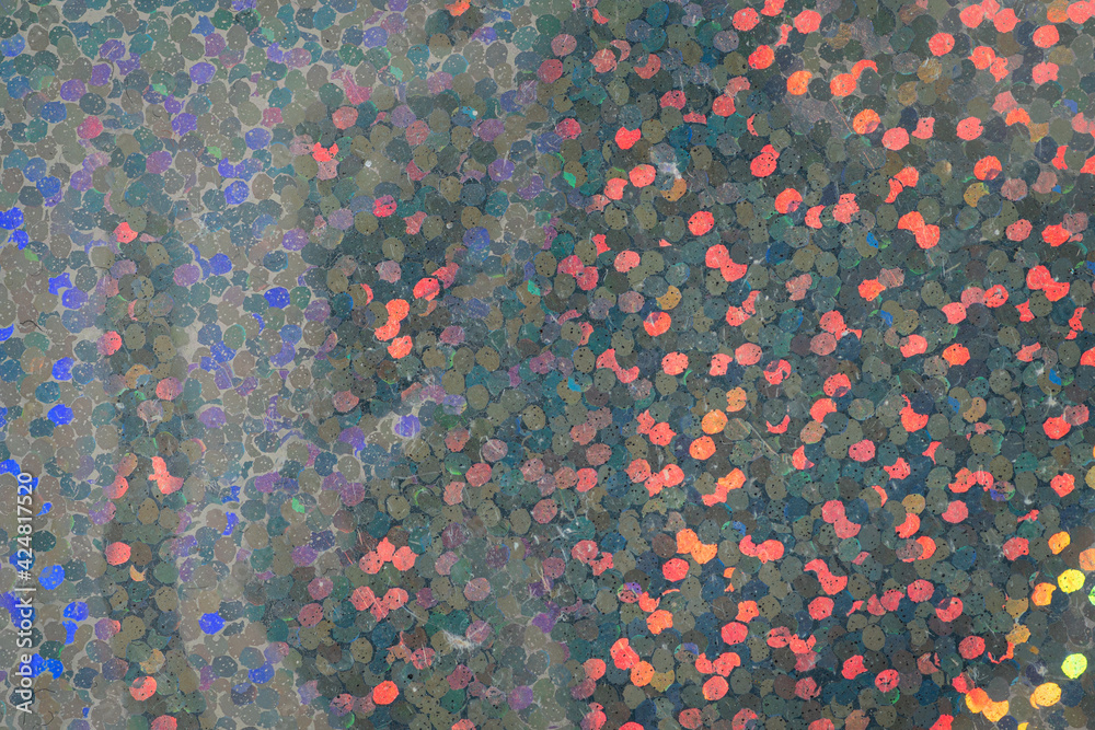 real hologram background of abstract foil texture with multiple glitter colors. Neon pastel and rainbow colors. Disco motion concept background.