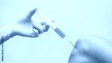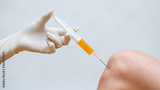 Doctor doing stem cell therapy on a knee with platelet-rich plasma injection.