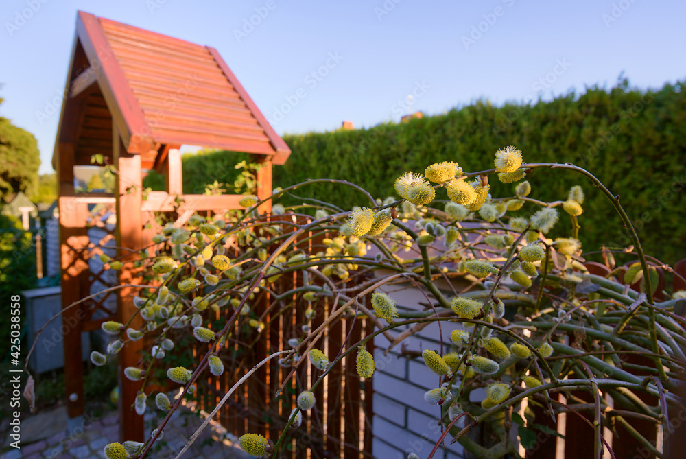 catkins - Flowers on the branches of willow in the garden on a sunny day