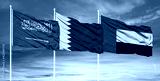 Flags of Qatar, the United Arab Emirates and Saudi Arabia. The blockade of Qatar