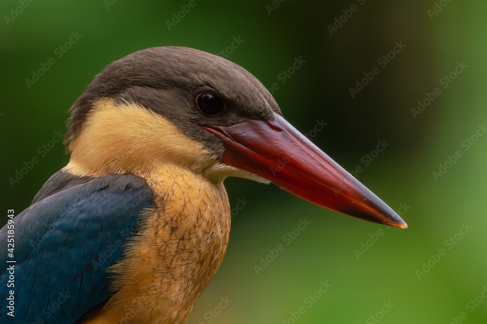 Face close up image of Stork-billed kingfisher.