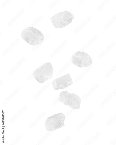 Falling sea salt isolated on white background, clipping path, full depth of field