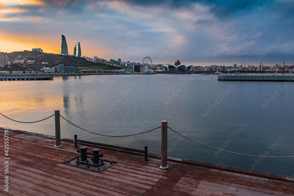 Evening Baku city. View of National Seaside Park
