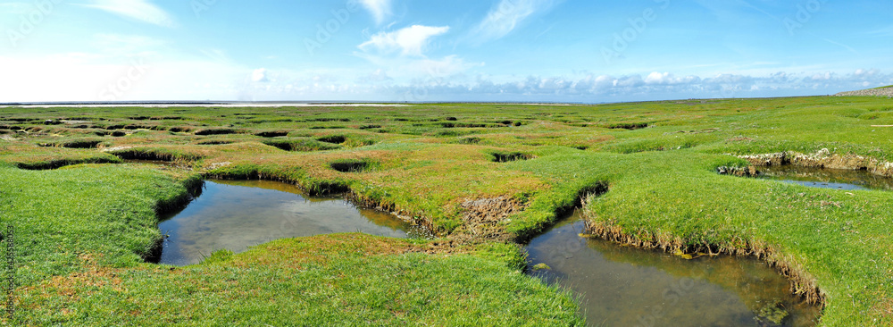Gras am Nordsee Strand bei Ebbe - Nordseeküste in Deutschland