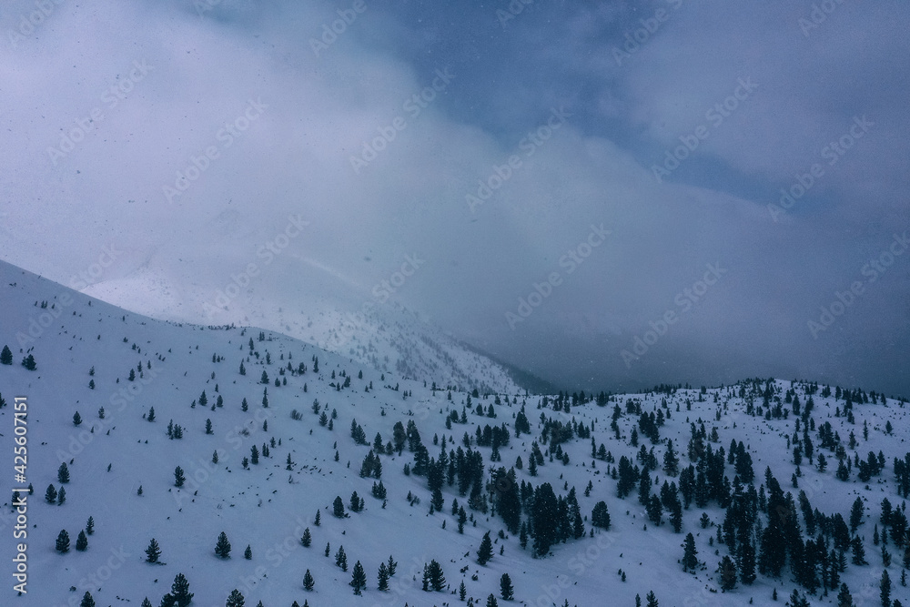 Russia, Ural Mountains, Dyatlov Pass place, winter, snow.