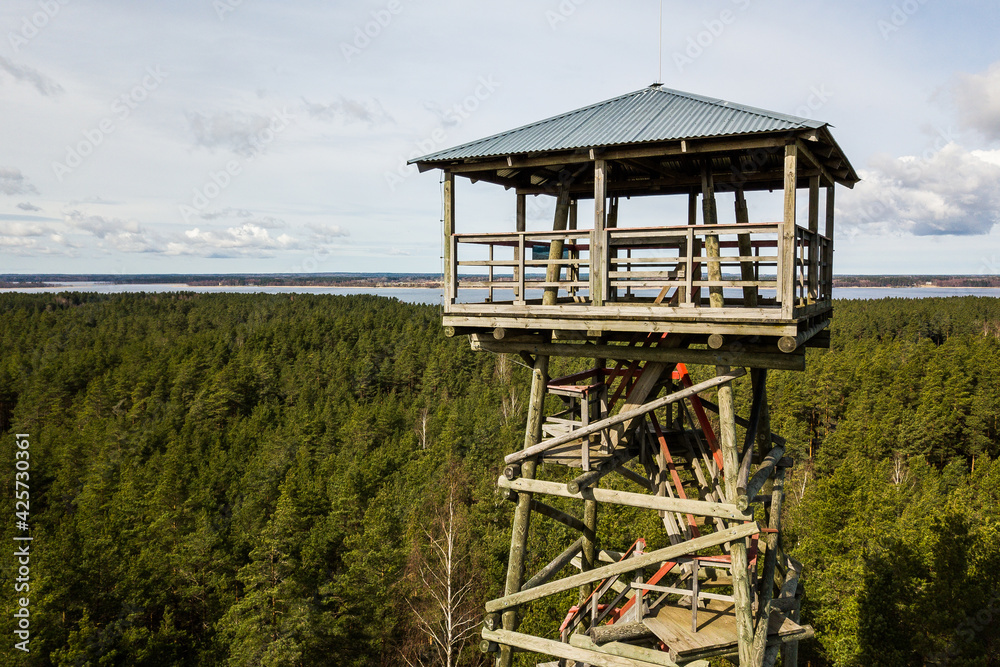 Udrkalna (Otter hill) watching tower near Usma lake, Latvia. Captured from above.