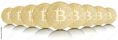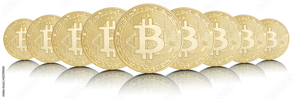 Bitcoin crypto currency paying online pay digital money cryptocurrency business finances isolated on white in a row
