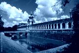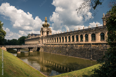 bridge over the moat with water leading to the old wall
