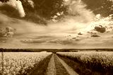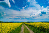 Panorama of rapeseed field with road
