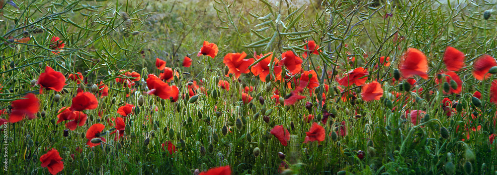 Poppy field landscape in English countryside in Summer