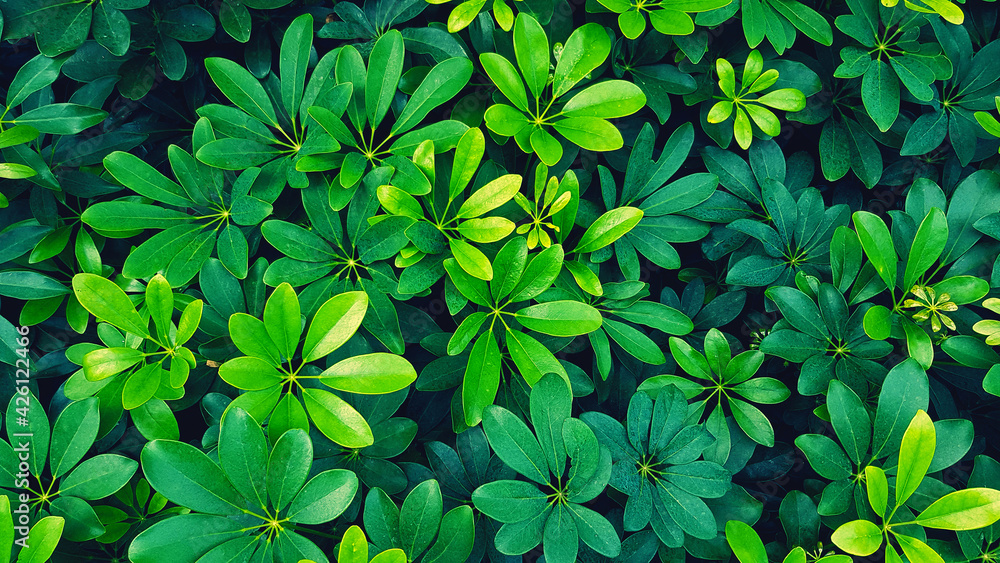 Beautiful fresh green leaves pattern for background at garden park in blue filter tone. Beauty of Nature, Growth, Plant and Natural wallpaper concept