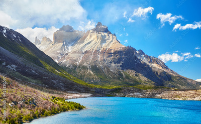 Lake Pehoe and Cuernos in Torres Del Paine National Park, Chile.