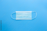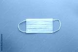 Blue surgical mask center frame to prevent infection of cattle and covid-19 and pm2.0. with copy space isolated on blue background