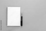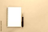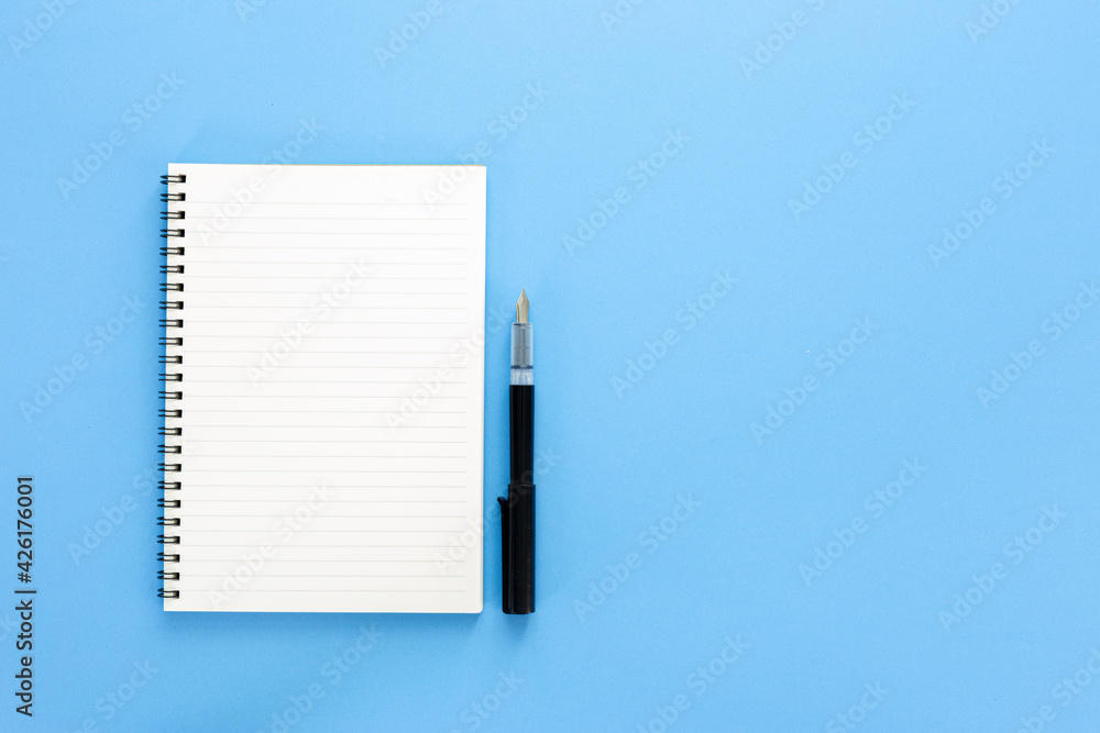 Notebook and pen with copy space isolated on white background , Top view ,Top view