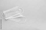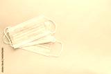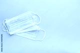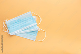 Three blue surgical mask center frame to prevent infection of cattle and covid-19 and pm2.0. with copy space isolated on orange background