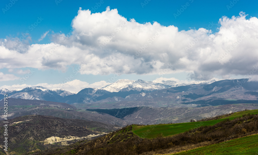 Mountain landscape with thick clouds