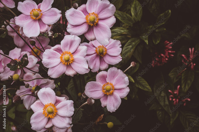 Closeup shot of beautiful pink Anemone flowers blooming in a garden