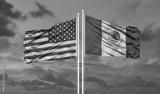 United States of America & Mexico Flags are waving in the sky
