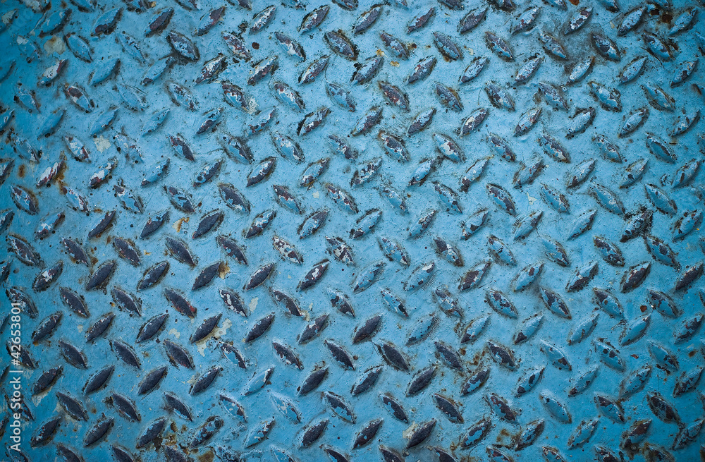 Blue grunge steel floor plate for background